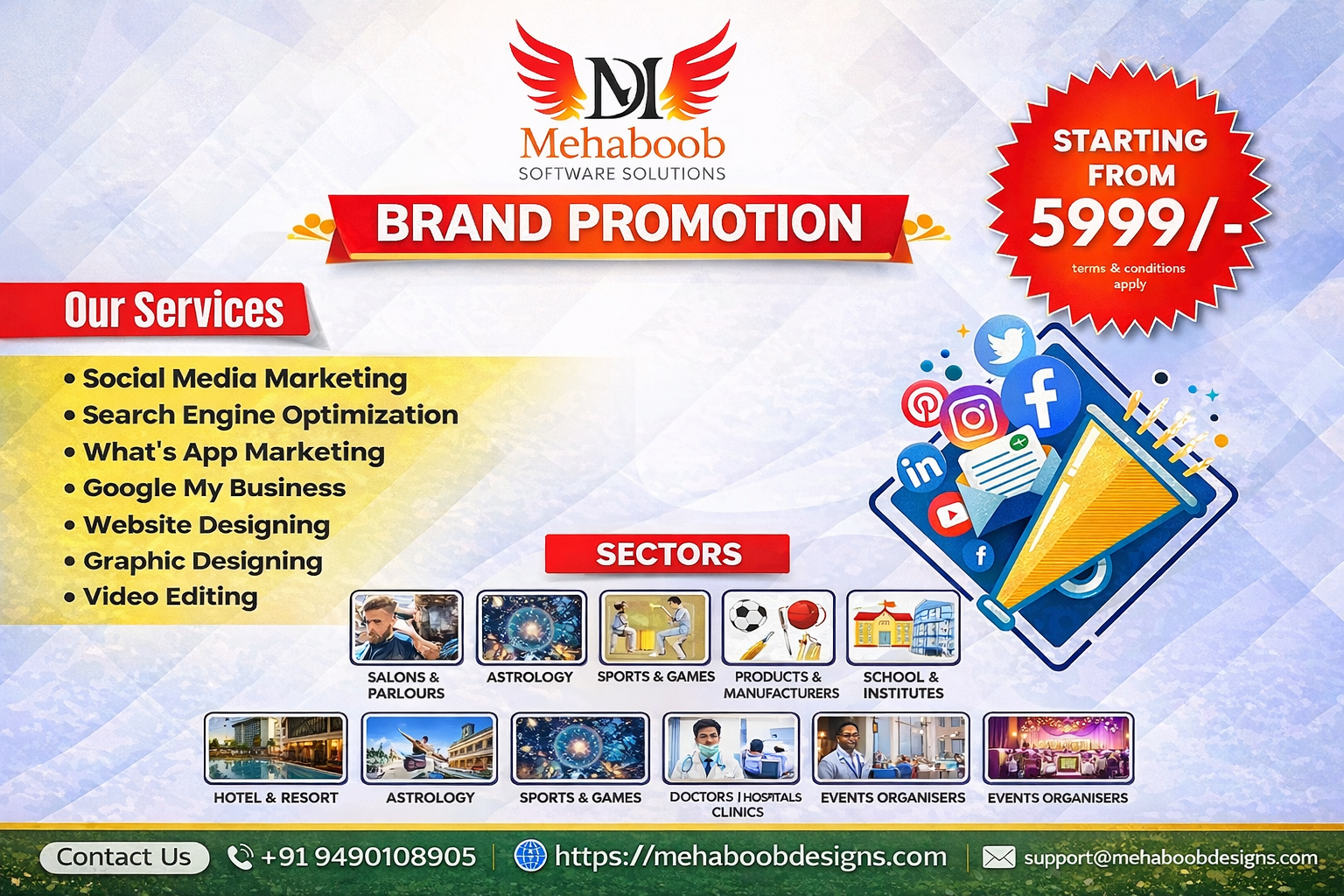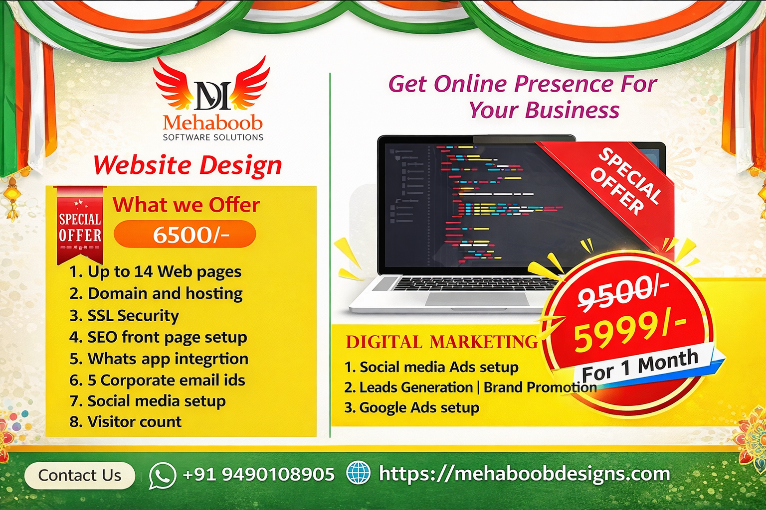 We create impactful and visually engaging designs that communicate your brand message effectively through logos, brochures, banners, and digital creatives tailored to your business identity.