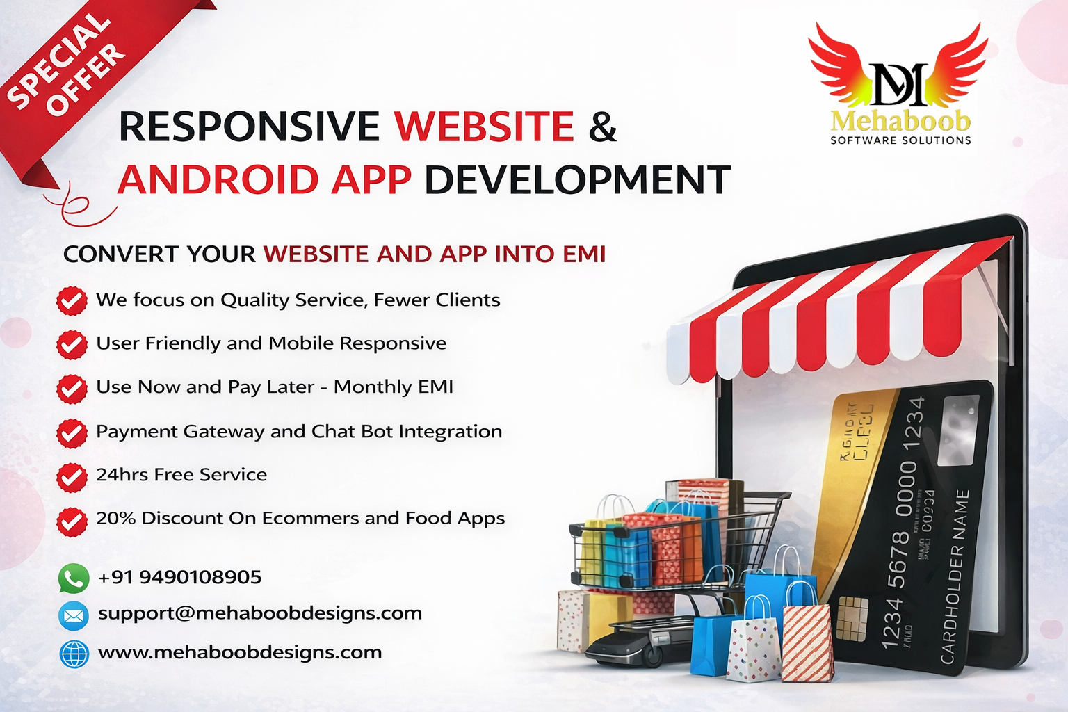 Mehaboob Software Solutions, established on April 1, 2022, is a trusted IT services company delivering high-quality, scalable, and result-oriented digital solutions. We help businesses grow through smart technologies, modern designs, and professional development services.